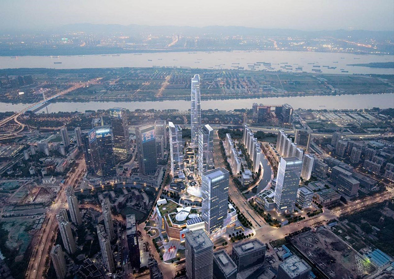 (3)蘇寧睿城商業(yè)綜合體:包含C0102項目和D07項目,綜合體位于鼓樓區(qū)集慶門大街科技園;C0102項目建筑面積280000平方米;建筑高度198米;D07項目建筑面積140000平方米;建筑高度178米;工程總造價800000萬元。
