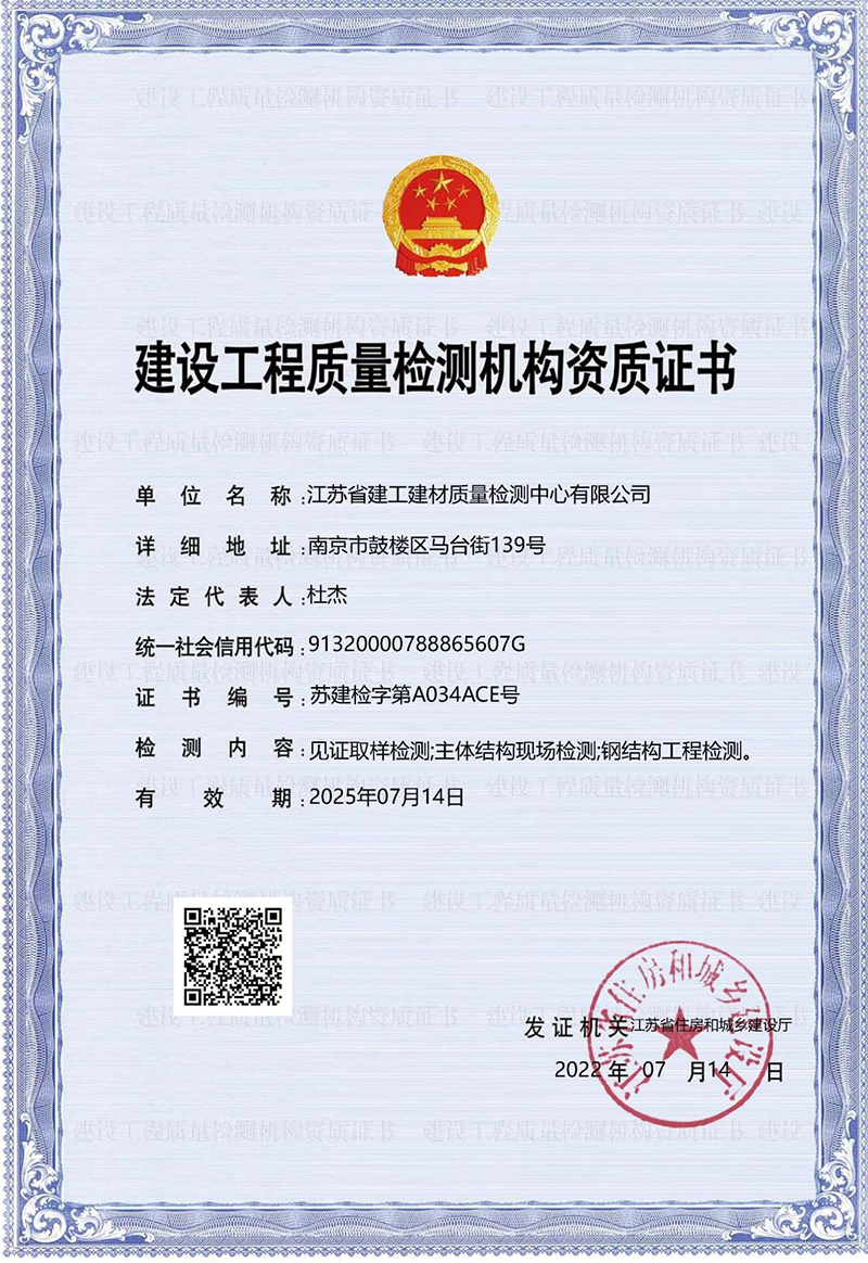 建設(shè)工程質(zhì)量檢測(cè)機(jī)構(gòu)資質(zhì)證書(shū)