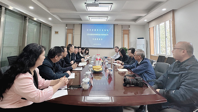 2023年10月23日,江蘇省建材行業(yè)協(xié)會榮譽會長聶長蘭、執(zhí)行會長張嵐嶸、副會長魯照寧、秘書長王繼勝、副秘書長張強一行到我院調(diào)研。